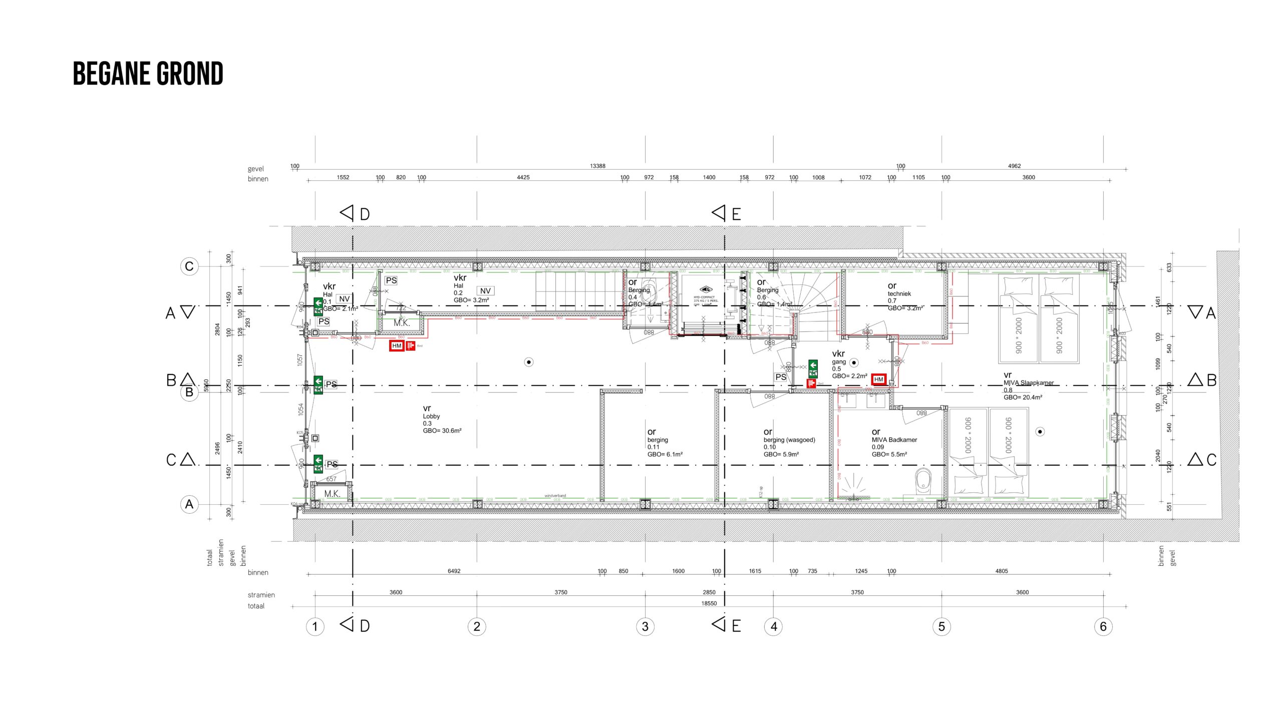 De bedrijfsruimte wordt casco opgeleverd voorzien van: